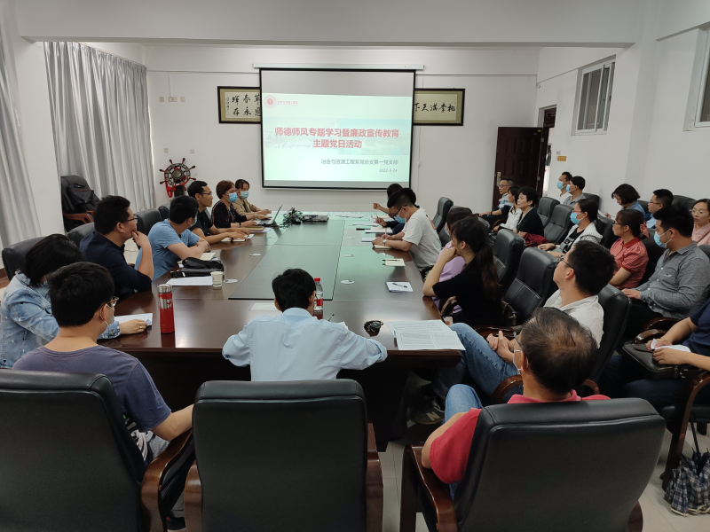 为进一步加强师德师风教育,推进清廉学校建设,营造风清气正的育人环境,5月24日下午,冶金与资源工程系党总支第一党支部组织开展师德师风专题学习暨廉政宣传教育主题党日活动。