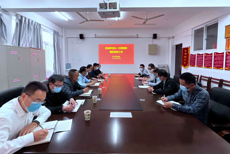 罗盛锋校长在调研过程中对各系部2022年度重点工作推进取得的成效表示肯定,他指出,师资队伍建设是系部发展的重要基石,要提前谋划,以强化师资队伍建设为抓手,促进系部提升办学育人质量。罗盛锋校长对各系部下一步工作的开展提出几点要求:一是要解放思想,转变观念,开拓思路,秉承“时不待我”的精神,鼓励干部职工“摸着石头过河”,敢于创新,主动作为;二是要强化政治担当,明确分工,层层压实责任,将重点工作任务科学分解,制定措施和方案,稳步推进;三是要加强师资队伍建设,组建教学科研团队,形成合理梯队,力争“三教改革”取得新进展、科技创新取得新突破,在教学、科研、培训等方面打造一批“金牌”教师;四是要坚持“以生为本”,教学、科研、管理、服务等各个环节要提升育人效果,组织干部、教师深入教室和宿舍,及时了解学生思想、学习、生活动态,切实在疫情防控的特殊时期加强人文关怀和心理,大力加强学风建设,促进学生成长成才;五是要坚持开放办学,实施“走出去、请进来”战略,主动与政府、企业对接,进一步提升学校的社会服务能力和影响力;六是要主动与相关单位、职能部门进行联系和对接,构建沟通机制,形成“1+1>2”合力,确保2022年度重点工作目标任务顺利完成。