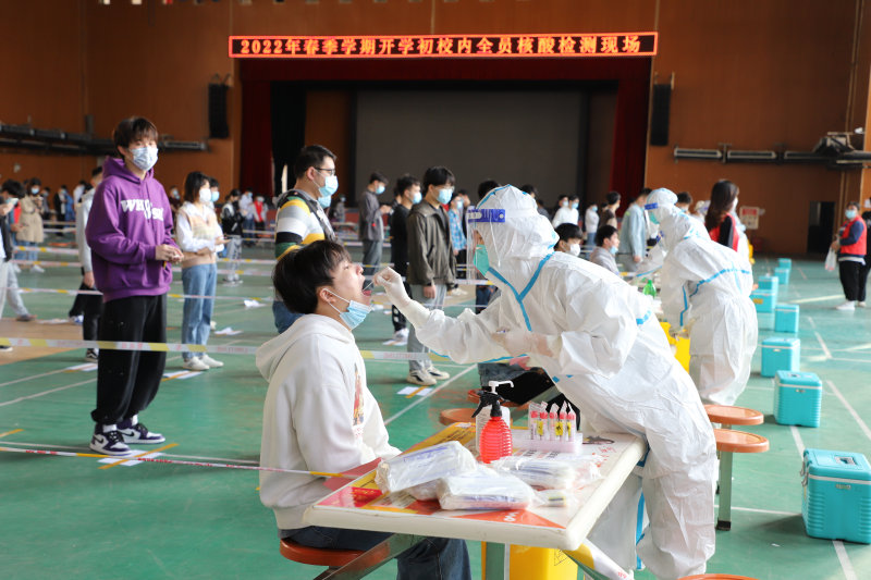 为保障广大师生员工健康和校园安全,充分落实“四早”要求,根据扶绥县疫情防控工作的有关要求和统一安排部署,3月9日,伟德国际victor·1946源自在空港校区体育馆开展春季学期开学初全员核酸检测。