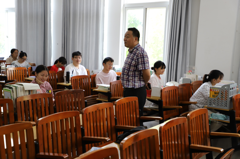 在检查新建9号学生宿舍楼项目施工情况后,罗盛锋校长一行到考研教室慰问暑假留校备战考研学生,罗校长亲切询问留校学生暑假在校生活和学习情况,现场互动解答了同学们的相关疑惑并分享了考研经验,最后罗盛锋校长鼓励同学们要努力复习争取考上理想学校。
