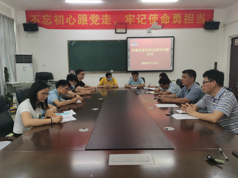 为全面落实意识形态工作责任,进一步推动意识形态工作扎实开展,机械系于7月2日召开了意识形态工作会议精神,专题部署推进2020年意识形态工作。会议由该系党总支书记袁斌主持,系主任黄荣学、副主任甘卓权、系党总支副书记兼学工组长李杰、系团总支书记唐淑珍出席会议,该系教职工参加会议。