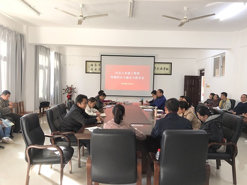 12月3日下午,冶金与资源工程系在探源楼207会议室召开师德师风专题学习教育会,深入学习习近平总书记关于师德建设的系列重要讲话精神。会议由系党总支书记主持,何贵香主任领学,全体教职工参加会议。