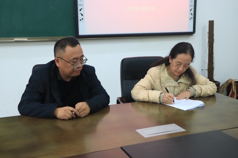 系党支部书记代表邓娟与党总支书记谢晓明签订意识形态责任书