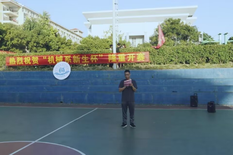 金秋的艳阳依旧,今日的秋风轻柔。为给我系学子提供互相交流的机会、丰富校园生活、培养团队精神和体育精神。10月15日17:00,我系举行2022届新生杯篮球赛开幕式。出席本次开幕式的有:机械系党总支副书记兼学工组组长李杰老师、辅导员王胜老师、丁珊珊老师、孙一楠老师,系篮球队指导老师陈致君老师,以及我系团总支•学生会全体工作人员和全体参赛运动员。