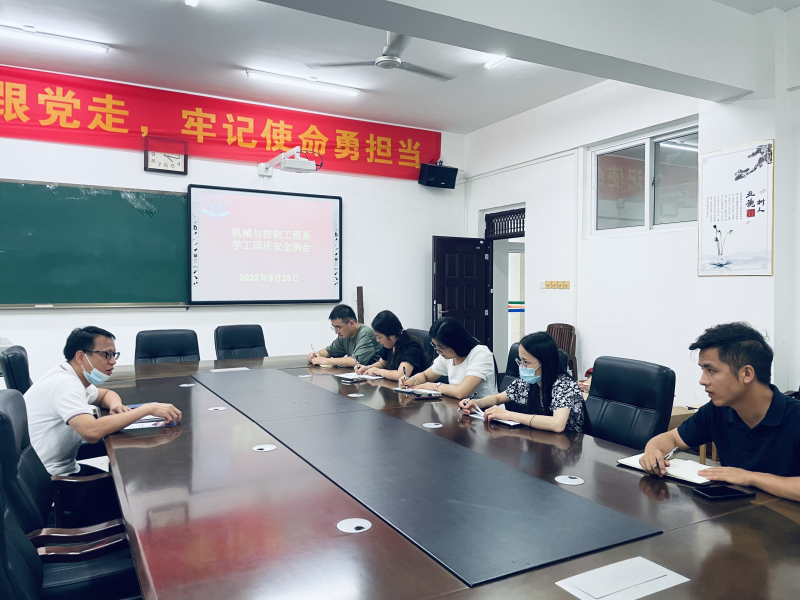 2022年9月28日,我系学工组于3205会议室召开国庆假期安全例会,参会成员主要有系党总支副书记兼学工组组长李杰及全体辅导员。大会主要针对国庆假期安排、疫情防控监察、学生安全问题进行了讨论。学工组组长李杰传达了学工部对学生国庆假期安排的宗旨和原则,并明确指出,作为学生工作的一线力量,辅导员必须要切实落实好学生国庆期间的校园生活安排和校外返校审批,打好疫情防控这场仗。