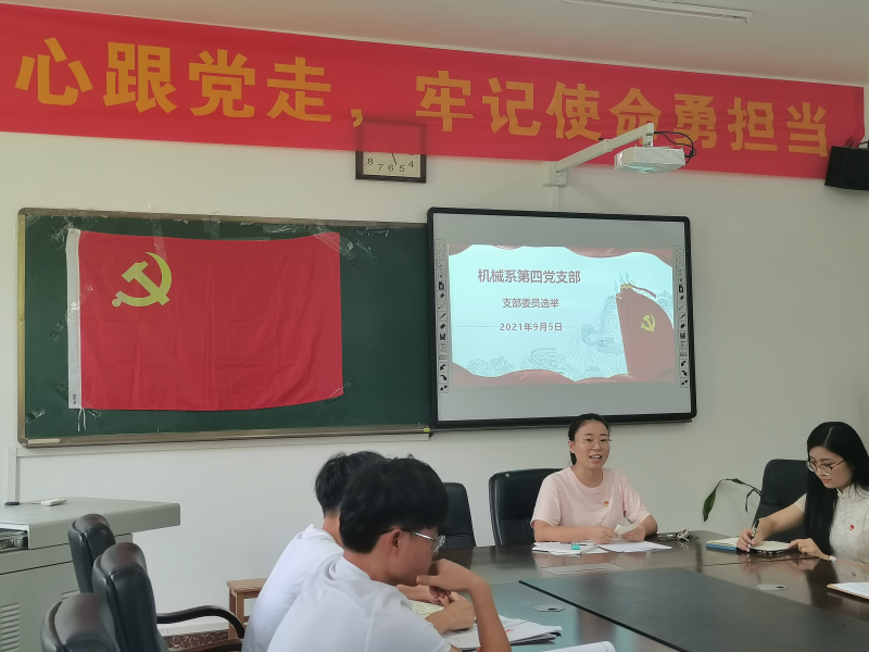 根据实际工作需要,为进一步完善机械系第四党支部组织设置,充分发挥基层党组织的领导核心作用。2021年09月05日下午5时,机械系第四党支部召开党员大会进行支部委员选举工作。