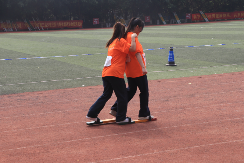 民族运动板鞋竞速在4月18日田径场上进行,板鞋竞速是壮族民间传统体育项目,尤其考验团队的默契配合,为此她们一遍又一遍练习着同样的动作,不断磨合力量的协调,提升发力技巧。