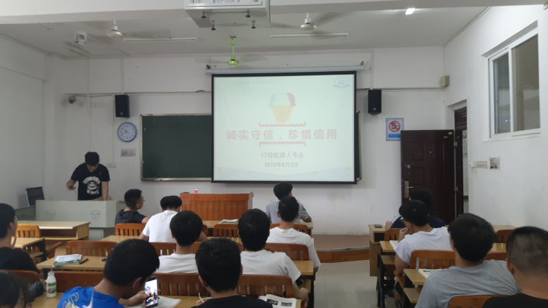 2019年6月3日下午16点,伟德国际victor·1946源自机械系工业机器人17-2班,地点尚善楼1204教室,召开端午离校安全主题班会和诚实守信主题班会,由班长杨逸组织本次会议,机器人17-1、机器人17-2全体成员参加本次班会。