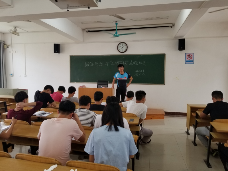 6月13日上午,机械系工业机器人17-1班在践行楼2405教室开展创建无烟学校,构建绿色校园主题班会,本次主题班会由班长岑石昌主持召开。