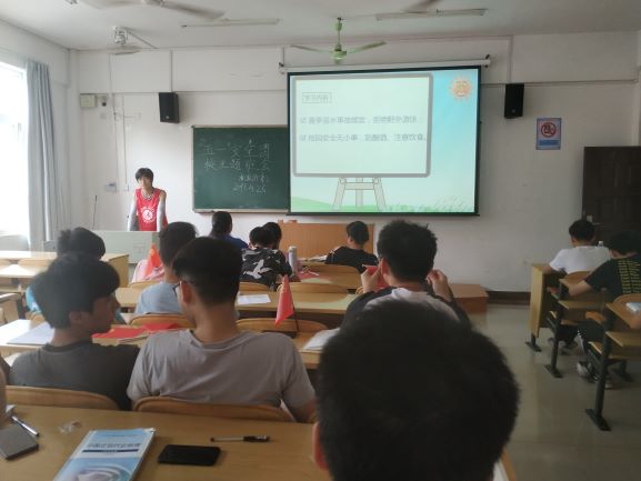 五一小长假将至,为加强和提高同学们的自我安全防范意识,机电18-本2班于2019年4月26日16时10分,在2206教室召开五一离校安全主题班会。会议以PPT的形式展开,由班长粟天星主持会议。