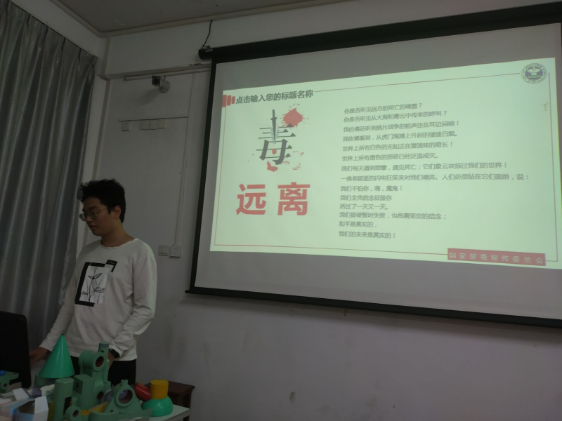 班长同学强调了应该远离毒品,毒品的危害,“毒品对个人、家庭和社会具有严重的危害。一,毒品对个人的危害。毒品作用于人体,会使人体产生适应性改变,形成在药物作用下的新的平衡状态,一旦停药,生理功能就会紊乱,出现一系列严重反应,称为戒断反应,使人感到非常痛苦。二对家庭的危害。吸毒者在自我毁灭的同时也破坏了自己的家庭,使家庭陷入经济破产、亲属离散甚至家破人亡的困境之地。三,对社会生产力的巨大破坏。吸毒者首先导致身体疾病影响生产,其次造成社会财富的巨大损失和浪费。同时毒品活动还造成环境恶化,缩小人类的生存空间。”