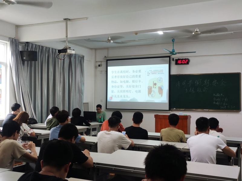 2021年3月30日下午,为迎接到来的清明节假日,使同学们在假期中对安全更加注重,在藏修楼3406室由机制17-本2班班长岑宣达主持开展了安全主题班会,本次会议是机制1班和2班联合举办,并邀请了袁斌书记和唐淑珍老师。