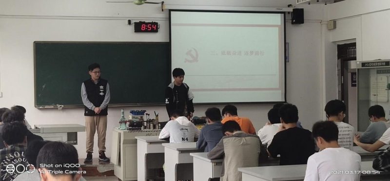 3月17日早上八点半,我系自动化20-3班于藏修楼3303教室开展了三月份团员主题团会——“传承红色基因,践行初心使命”并邀请了我系辅导员韦选建老师前来观看。