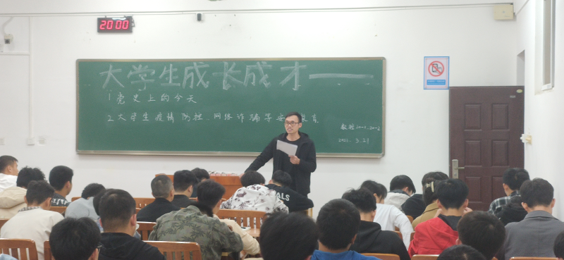 3月21日晚上,在3302教室开展由辅导员韦选建老师上的成长成才课,参与人员有数控20-1班和数控20-2班两个班级的全体同学。