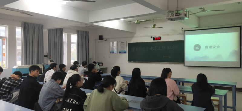 本次会议主要目的在于,学习清明节假期安全问题,提高同学们的安全忧患意识,切实保障同学们的生命财产安全。会议初始由本班同学进行主持操组织委员梁坚进行PPT演示。会议主要由普及学生离校安全、路途安全、假期安全、食品安全、个人信息安全及学生返校安全六大议程组成,通过对这六项议程的学习,与会全体人员的安全意识都得到了有效的加强,并且更深层次的普及了假期各项安全问题及应对各种问题的有效措施。成功的让同学们更加的重视自身的生命财产安全,以及为假期生活中的各种安全问题提供了一个有效的保障。组织委员在主题班会上通过PPT直观的将有关清明节发生的各项事故展现在同学们面前,以提振同学们的忧患意识。而后,通过班级代表发言人的精彩演讲,更加有力的唤起同学们的无限热情,会议到此也由此接近尾声了。最后,由本班班主任兼辅导员进行发言总结,为同学们捋清了思路,为同学们的实践提出了一系列建议,至此,会议结束。