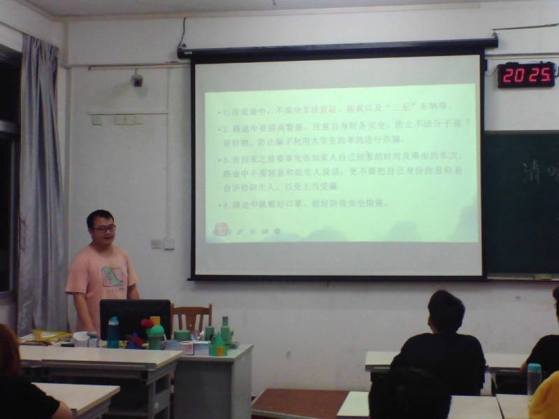 3月29日晚上8点,在3503教室召开了以清明节放假安全教育为主题的班会。会议的内容是关于清明节放假的安全教育,包括离校安全、路途安全、假期安全、食品安全、个人信息安全、返校安全。会议的目的是通过对安全教育的学习,提高学生的安全防范意识。