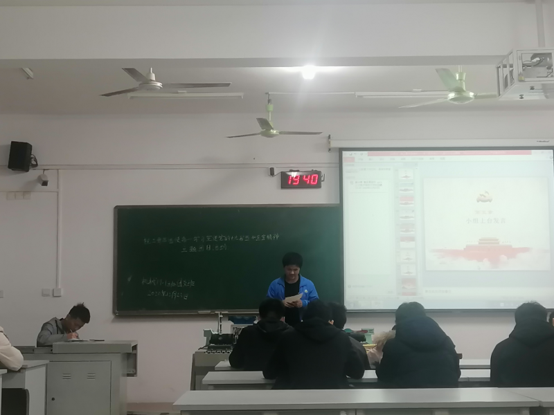 宏伟蓝图鼓舞人心,学习宣讲凝聚力量。12月22日晚19:00至20:00,机械19-1团支部于3303教室开展了主题团日活动,学习宣传党的十九届五中全会精神。