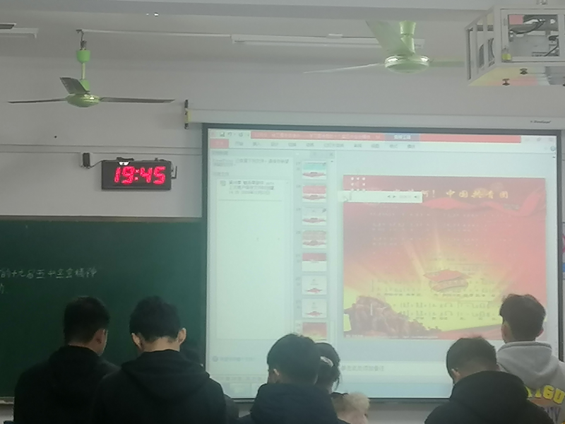 会议期间,团支书增加以小组形式讨论此次主题团日活动的内容,并每个小组推荐三名同学上台发表,进一步落实大会精神的学习。