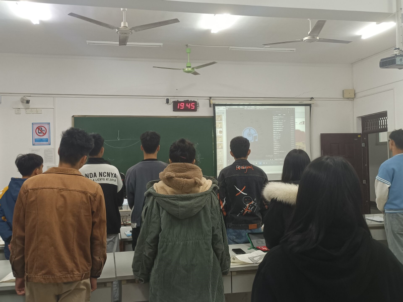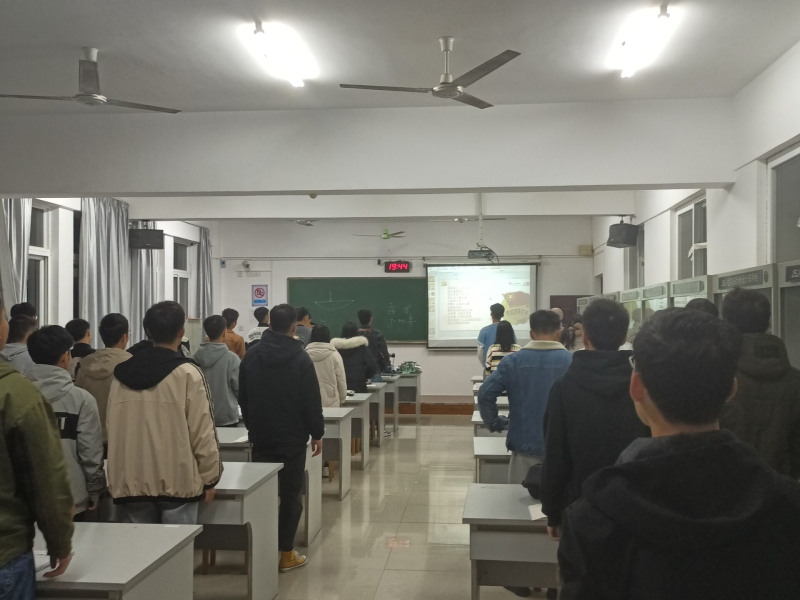 本次团日活动由团支书钟桂全主持,共四项议程。第一项, 全体成员共同起座奏唱团歌。