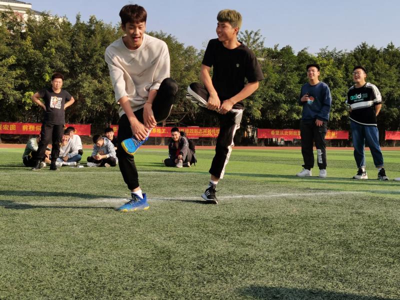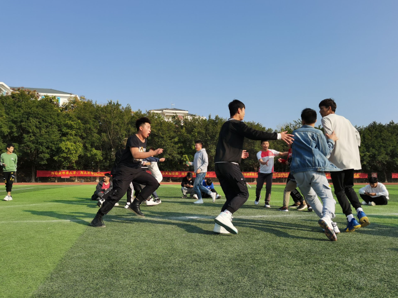 活动即将开始开始,班长作为主持人快速组织同学们分好小组积极参与此次活动。同学们以宿舍为单位划分好小组,各组成员轮流参与第一项游戏:斗鸡。整个游戏过程激烈而欢乐,只见同学们一位又一位离开赛场,直至全体班级同学全部参与后游戏结束。虽然游戏需要同学们互相碰撞,但都保持着适当的力度避免伤害到其他同学,体现了同学之间的深刻友情。第一项游戏结束后,班长又立刻组织同学们开展第二项游戏:抱团儿。按所分小组,每组三个人参与游戏。游戏开始,同学们围绕着一个圆慢慢走动,只听主持人一声令下,同学们快速找到身边的同学抱成一团,而剩下落单的同学则被淘汰。