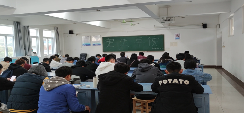 为了培养大学生的法律意识,让法律渗入到我们心中,能做到知法、守法、懂法用法。12月4日上午八点整我系机械20-2班于藏修楼3404开展了“宪法晨读日”早读活动。到场人员为机械20-2班全体同学。