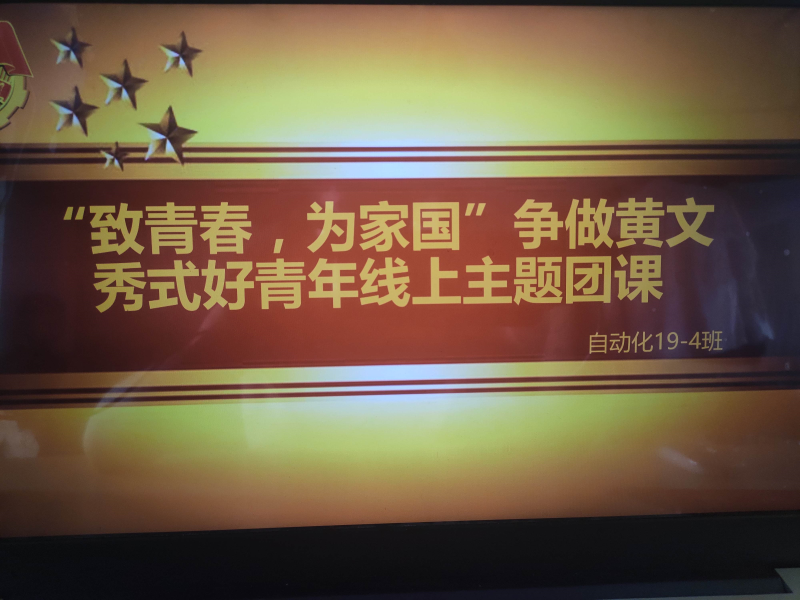 “青年一代有理想、有本领、有担当,国家就有前途,民族就有希望,”这是习近平总书记给我们青年的寄语。为充分学习并贯彻这种精神,5月23日中午12:00自动化19-4班采用线上方式开展学习“致青春,为家国”争做黄文秀式好青年主题团课,团课由班团支书组织开展,通过qq群分享屏幕功能进行直播播放学习。