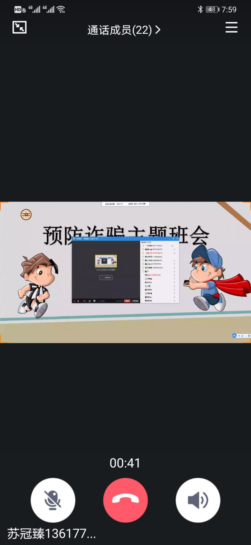 为加强学生安全防范意识,切实保护学生免受财产及人身侵害,机电18-本2班于5月1日20时召开预防诈骗主题班会,班会以线上直播的方式开展,由苏冠臻同学主持,此次班会的主要人员:班主任黄基宁老师。