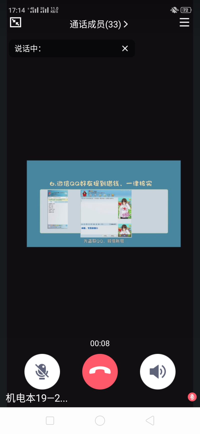 为了加强同学们对诈骗的了解与认识,拓宽诈骗的知识和增强预防诈骗的能力。5月12日,机电19-2班在班群召开了预防诈骗主题班会。会议由黎嘉明同学主持召开,班主任李燕和机电19-本2班全体成员共同出席。