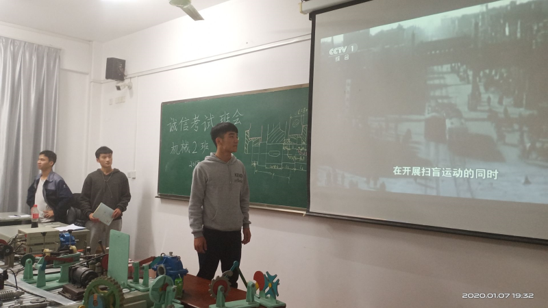1月7日19:30分我系机械19-2班在3303召开了诚信考试和寒假安全教育主题班会。班会由班长鲍海华同学主持。