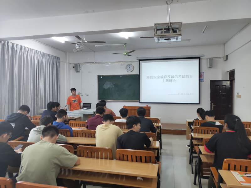 1月8号早上,我系机器人18-1班在藏珍楼3304教室召开寒假假期安全和期末诚信考试班会,本次班会由班长郑金石主持。