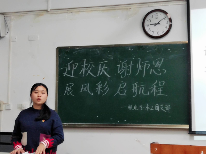 2019年是伟德国际1946建校63周年,为迎校庆,12月4日21时,机电18-本2班于6304教室开展“迎校庆谢恩师,展风采启航程”主题团课活动,本次团课特邀嘉宾:班主任黄基宁老师、团委·学生部副主任粟天星同学、机械系团总支副书记叶香艳同学、分校学生会常务副主席陆靖媛同学参加了此次活动。