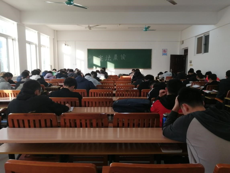 为大力弘扬法制精神,进一步增强学生的法律意识和法律观念,积极营造校园学风的建设。2019年12月5日上午8点整在班长和团支书的组织下,我系自动化19-2班全体成员在藏修楼3301教室举办了宪法晨读活动。