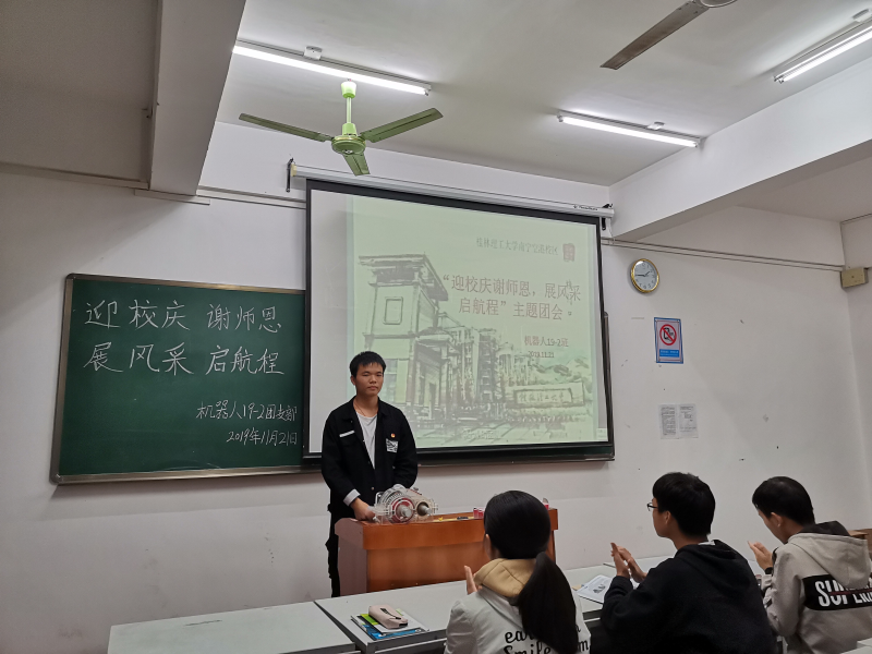 11月21日晚上,机器人19-2团支部在藏修楼3502教室,召开了“迎校庆谢师恩,展风采启航程”主题团会。团会由团支书林志锐、组织委员何霖、宣传委员莫玉香负责,并由团支书林志锐主持进行,出席会议的有班主任李杰老师以及机器人19-2团支部全体成员。