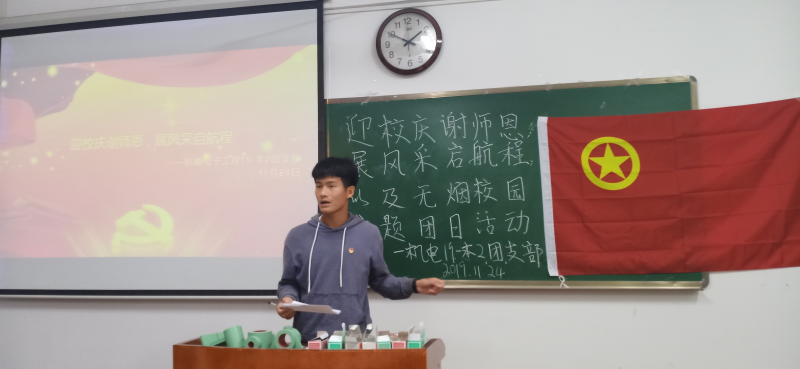 在校庆即将来临之际,为了展示我校青年团员良好的精神风貌,激发广大青年团员感谢师恩和爱校热情。2019年11月24日晚,机电19-本2班于三栋藏修楼3406室开展了以“迎校庆谢师恩,展风采启航程”为主题的特别主题团日活动,机电19-本2班的全体成员出席活动。本次活动由副班长凌梧桐主持召开,并由机械系团总支部成员进行现场指导、监督及考核。