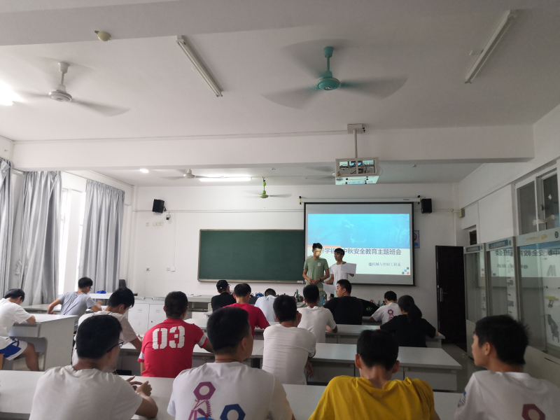 9月10日下午17时,为加强同学们的安全防范意识,机电17-本1班于藏修楼3303教室召开开学初及中秋安全主题班会,班会由副班长苏新果同学和团支书廖良全同学主持。