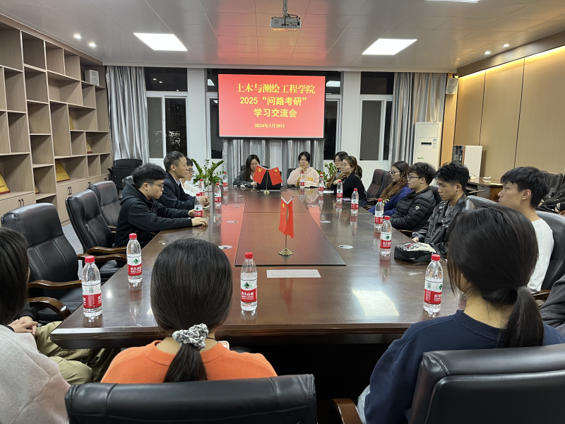 为充分激发2025届毕业生考研的积极性,帮助他们认清考研形势,明确考研目标,树立考研必胜的自信心,3月20日晚上7:30,土木与测绘工程学院组织召开2025届毕业生“问路考研”学习交流会,学院负责人刘茂军、教师代表贺伟盼、各班辅导员以及学院2025届有考研意向的毕业生参会,会议由辅导员石慧梅主持。