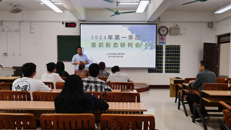 3月25日上午,土木与测绘工程学院2024年第一季度意识形态研判会在物华楼406会议室召开,学院负责人刘茂军、何建金及全体辅导员出席会议。会议由学院学工负责人何建金主持。