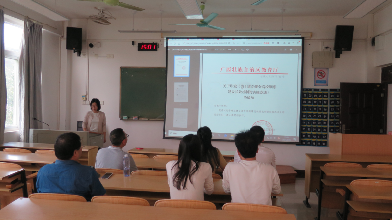 会上,各教研室主任领学习近平总书记关于师德师风建设的重要论述、《新时代高校教师职业行为十项准则》、《广西高校教师职业道德考核办法》、《广西高效教师职业道德负面清单和失范行为处理指导意见》以及学校《师德师风负面清单和失范行为处理办法》、《伟德国际1946教师职业道德考核办法》,组织观看师德师风相关课程。