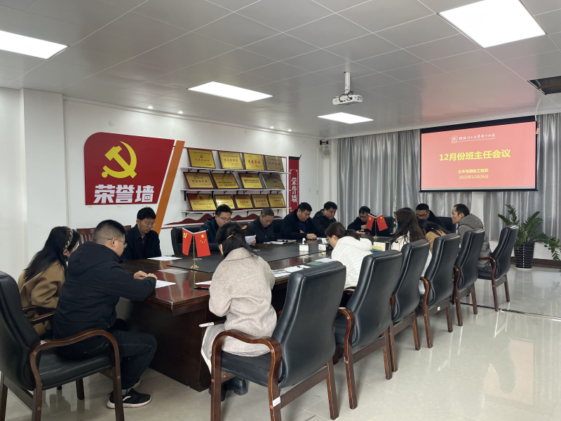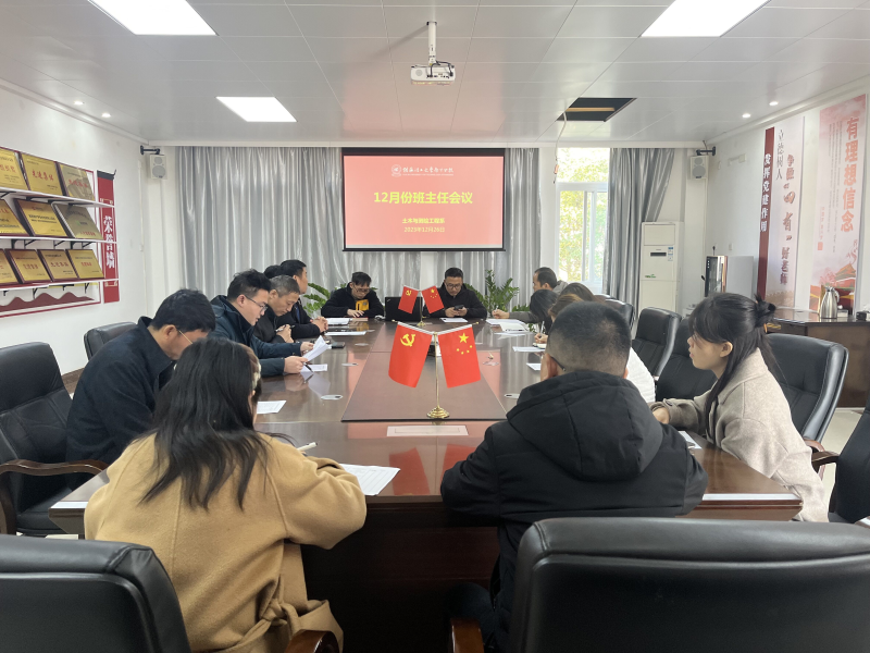 12月27日,土木与测绘工程学院于物华楼406会议室召开2023年秋季学期12月份班主任工作会议。本次会议由学院负责人何建金主持,学院领导班子、全体辅导员及班主任参加本次会议。