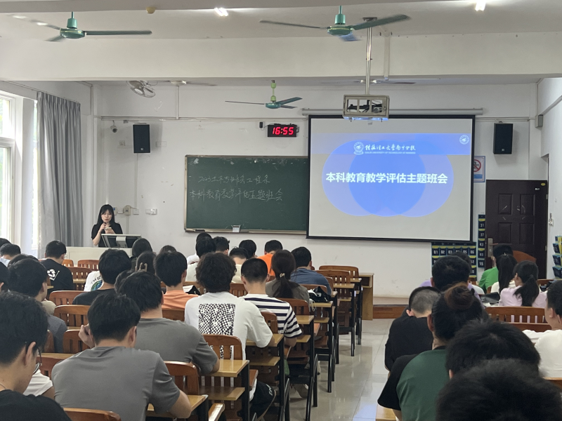 会上,各班班主任介绍了本科教育教学审核评估的意义内容特点、大学生行为文明规范和课堂纪律,对本科教育教学审核评估知识进行了普及,重点讲解了评估对学校发展的作用、评估与学生之间的关系、学生在评估中能发挥怎样的作用。各班班主任希望同学们以本科教育教学审核评估为契机,增强爱校荣校意识,以评促建、以评促学,积极参与支持学校本科教育教学审核评估工作,主动从思想上和行动上与评估工作要求相契合,自觉遵守课堂纪律,积极参与校园文化活动,以良好的精神面貌迎接评估工作。