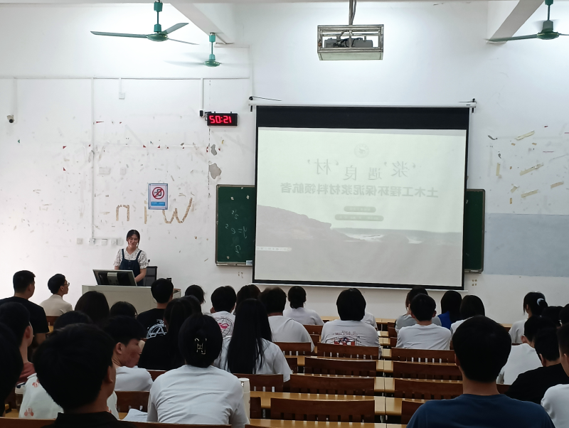 课上,吴克雄老师首先向同学们介绍教师个人创新经历与成果,系统全面讲解新型环保泥浆的研究过程及相关成果,同时,吴老师还邀请往届互联网+获奖项目负责人蒋佳同学分享科研产品迈向创新创业的过程,展现教师实践水平与知识深度,激发同学对科研创新的兴趣,引导同学们积极进行创新创业相关思考。接着,学生分享以小组为单位制作的工程前沿材料课件,加深对环保建筑材料科研发展方向的了解。最后,吴克雄老师使用新兴教学平台随机抽取同学,询问专业教育、创新创业与科研三者间的联系与区别,并结合同学发言进行总结,鼓励同学们积极参与创新创业项目和科研活动,勇于尝试。
