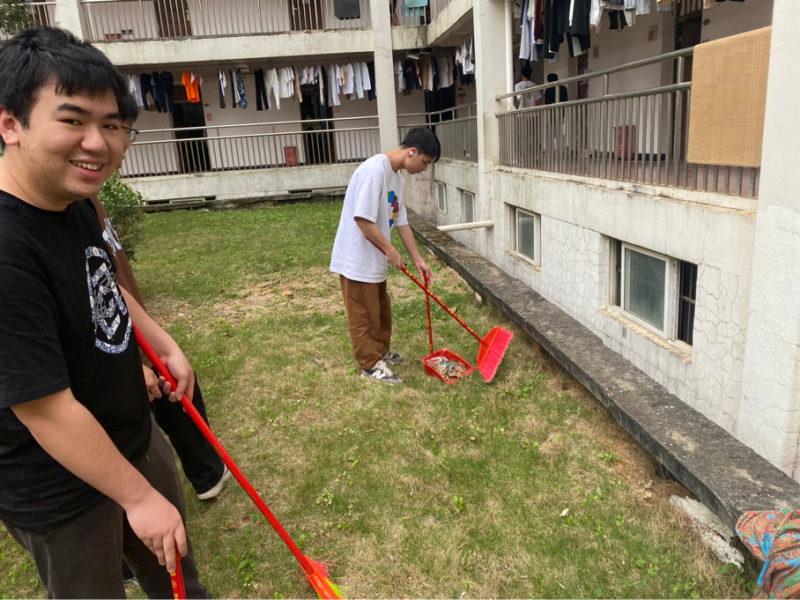 当日上午,同学们穿着统一,在一栋男生宿舍门口集合。其中,女生负责门口卫生,男生负责清理草坪。活动过程中,同学们热情洋溢、朝气蓬勃,展现出伟德国际victor·1946源自学生的良好精神风貌。他们清扫认真,处理了大量的落叶和垃圾,成果显著。