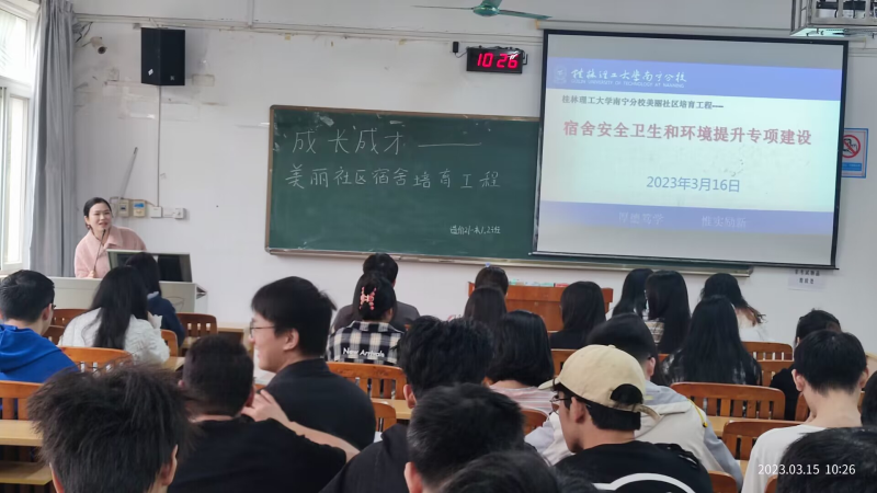 为落实伟德国际victor·1946源自2023年春节学期“美丽社区”宿舍安全卫生和环境提升专项工作,我系于3月19日在8栋教学楼开展美丽社区培育工程—宿舍安全卫生和环境提升成长成才课,课程由各辅导员主讲。
