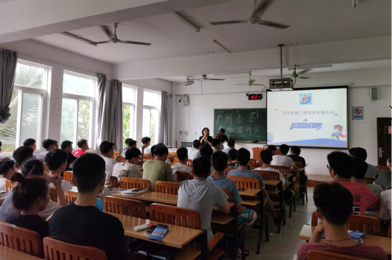 5月13日下午,广州市泰基工程技术有限公司赵崇华一行到我系物华楼305教室举办2022届毕业生专职招聘会。