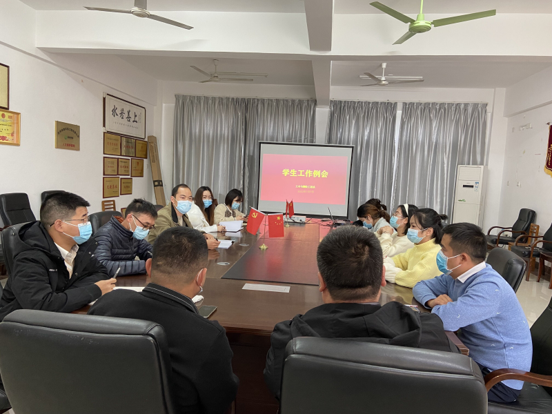 为安排近期学生工作,1月3日上午,我系在物华楼406会议室召开了学生工作例会,我系党总支书记黄文学、副主任赵凤阳、党总支副书记兼学工组组长罗勇、团总支书记韦选建以及全体辅导员参加本次会议,会议由党总支副书记罗勇主持。