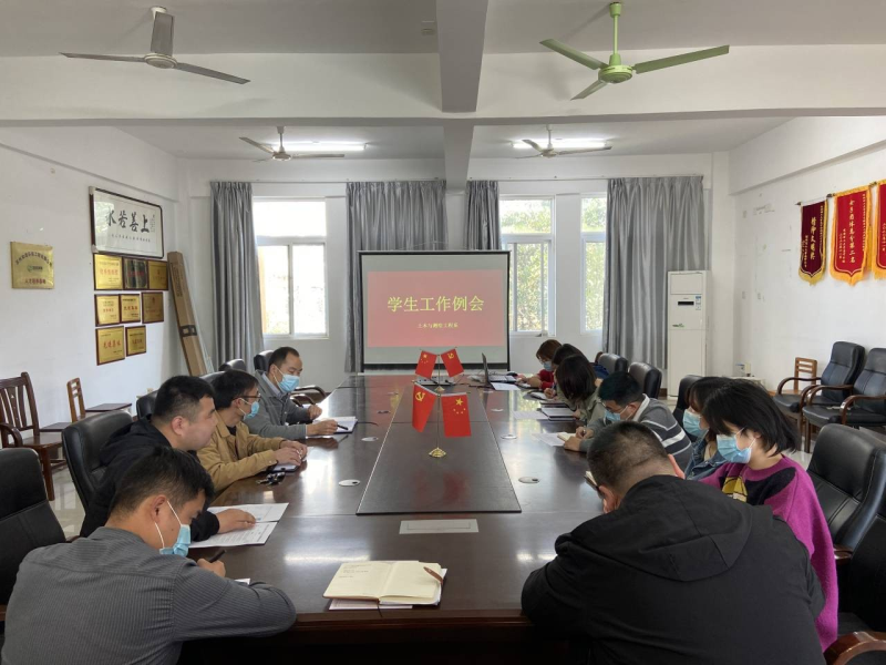 2月22日下午,我系于物华楼406会议室召开2021年春季学期开学初学生工作会议,党总支书记黄文学、党总支副书记兼学工组组长罗勇、我系全体辅导员参加会议。