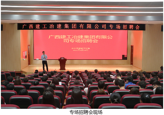10月19日下午,广西建工治建集园有限公司质量技术部副总经理徐育靖一行于启智楼408报告厅半办专场招聘会,招聘会面向土木与测绘工程系相关专业提供120多个就业高位,我系广大土木学子积极参与。