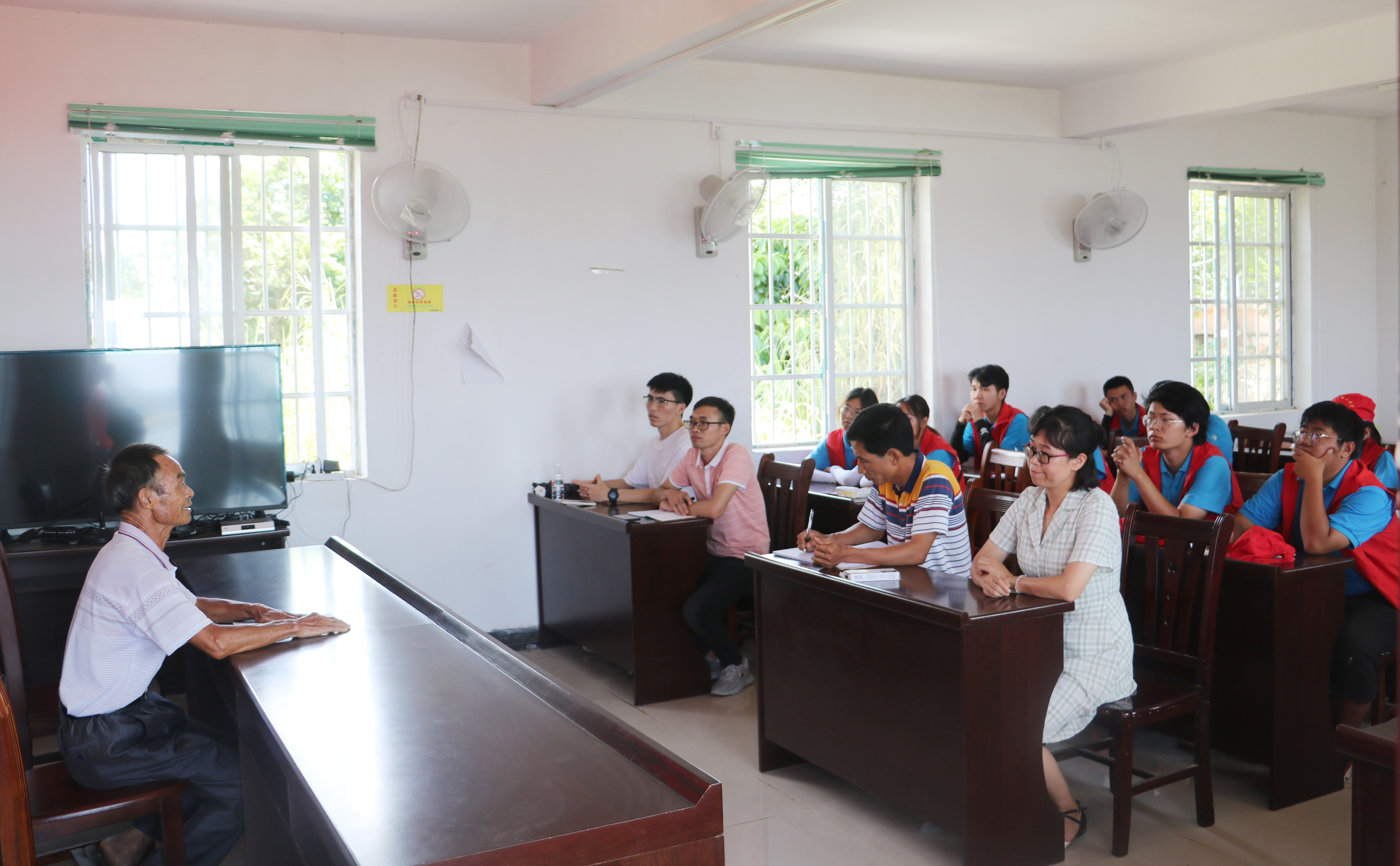 “中国共产党党员”是一个光荣而又神圣的称号。老党员陆啟飞爷爷谈起东罗镇近几十年来的飞速变化,他说到早年当生产队队长时,团结带领群众开荒耕种的艰险,在党的领导下,以身作则,动员群众,帮助群众切实解决耕种问题,早些年的通水、通电、通路,开发旅游业,脱贫致富,让群众生活一步步好起来。同时陆啟飞爷爷还对实践团的青年学子嘱咐道:先进青年要做好榜样力量,起到先锋作用;要深入基层,道群众中去,饮水思源,振兴乡村;要在实践中践行使命,践行党的初心与誓言。