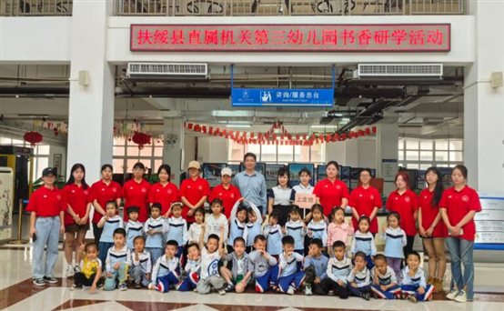3月23日上午,伴随着稚嫩的童声,30多名来自扶绥县直属机关第三幼儿园的小朋友走进图书馆,开展了一场充满书香和童趣的书香研学活动。