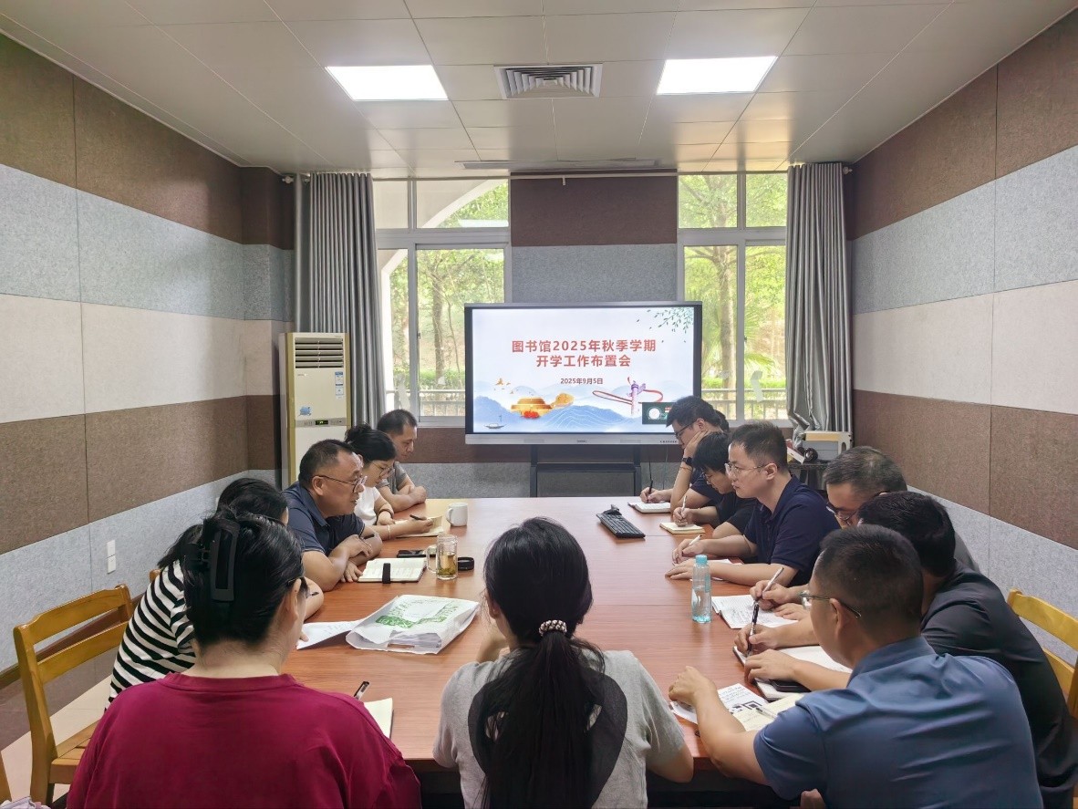 9月5日上午,图书馆在三楼研讨室召开2025年秋季学期开学工作布置会议。会议由馆长谢晓明主持,图书馆全体馆员参加会议。